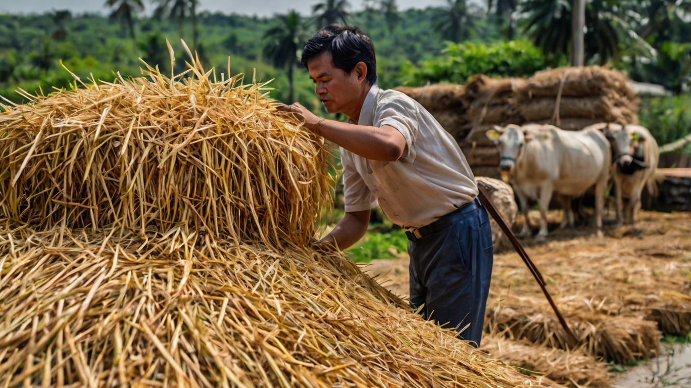 Biomass Preparation: Rice straw is chopped, pre-treated, and homogenized to improve microbial breakdown.